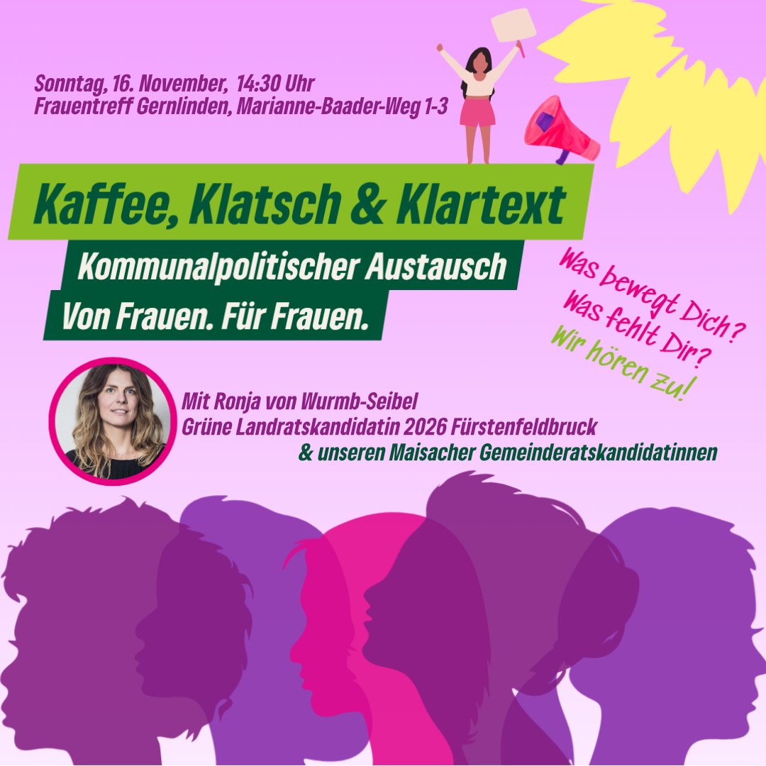 Mit dabei: Landratskandidatin Ronja von Wurmb-Seibel, die den Nachmittag mit inspirierenden Impulsen bereichert. Wir wollen Raum schaffen für die Anliegen von Frauen in all ihren Rollen – als Caregiverinnen, Arbeitnehmerinnen, Mütter oder einfach als sie selbst – mit allem, was das Leben an Herausforderungen und Chancen bereithält.