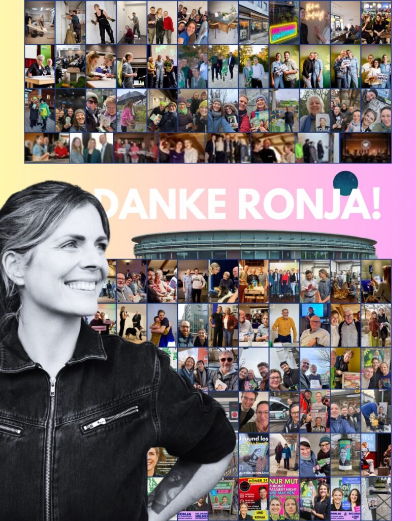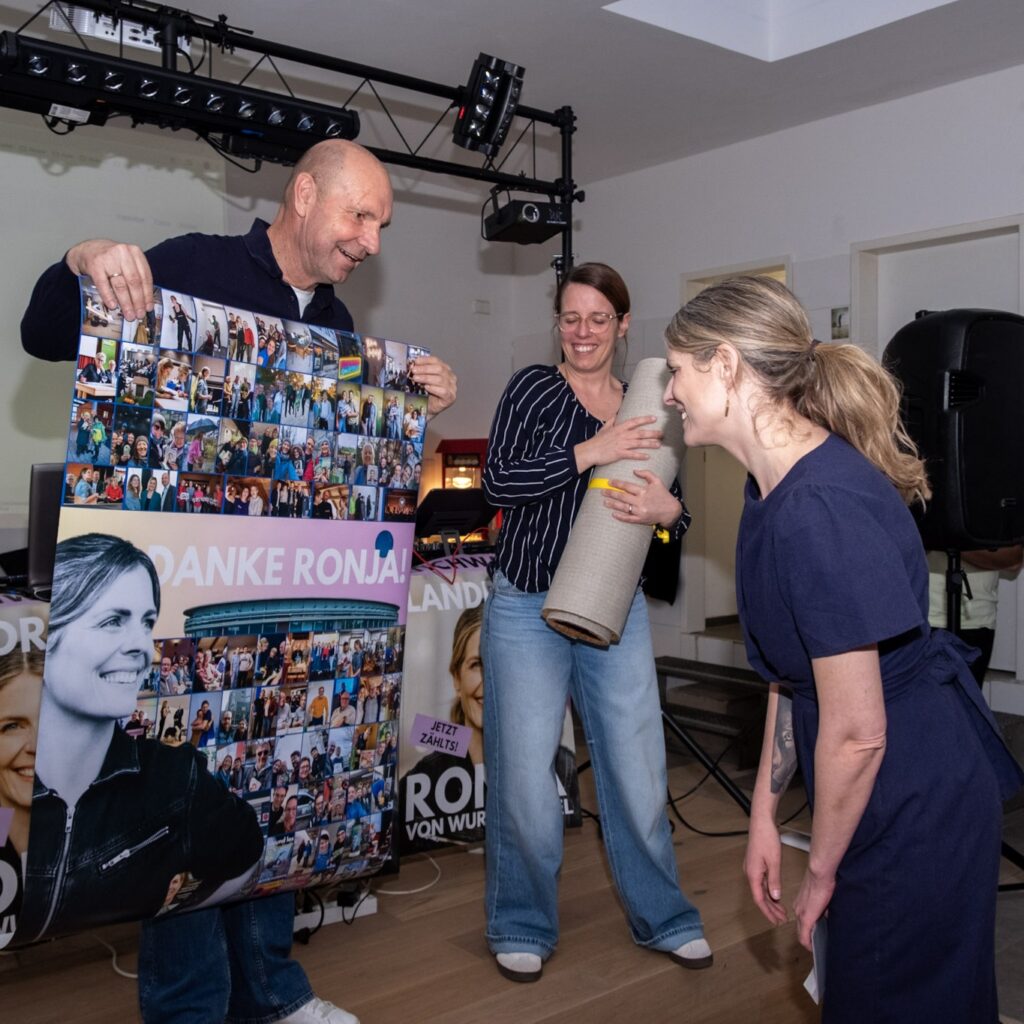 - Die Kampagne selbst war nicht ohne Risiko: eine weitgehend unbekannte Spitzenkandidatin, ein rein positives Narrativ mit dem Angebot zur überparteilichen Zusammenarbeit, Fokus auf direkten Austausch mit Wählerinnen und Wählern und Haustürgespräche. Mehr als 35.000 Haustürgespräche führten nicht nur zu einer erstmaligen Stichwahl, sondern auch zu ca. 25% mehr Stimmen für Ronja von Wurmb-Seibel als der bestplatzierte arrivierte Lokalpolitiker in der Fraktion. Dies zeigt, mit dieser Strategie können wir auch Wählende außerhalb der Grünen Blase erreichen und für uns gewinnen.